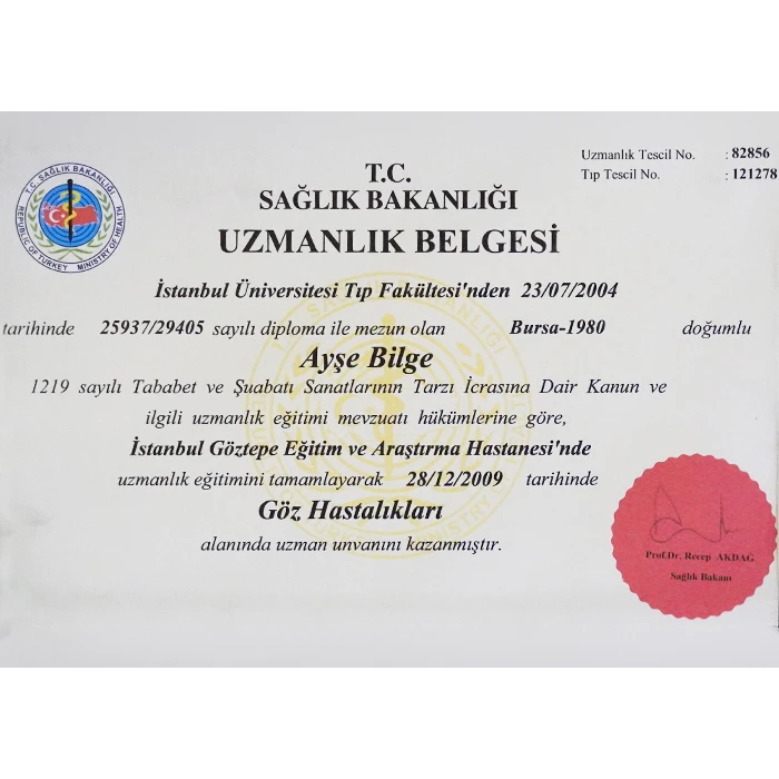 As an Ophthalmologist, Dr. Ayşe Dolar Bilge, I provide diagnosis and treatment services with my experienced team.